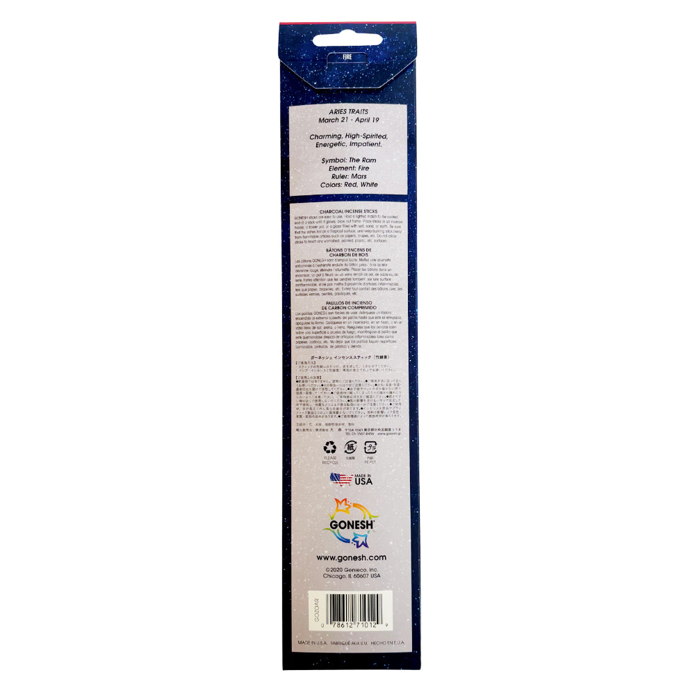 GONESH ZODIAC – Aries | Bamboo Incense, 20 Sticks (Honeysuckle, Tuberose, Orange Blossom)